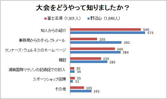 | 方法 | 大会エントリー者への事前案内に、アンケートを同封(2010年4月下旬)。大会当日受付で回収 |