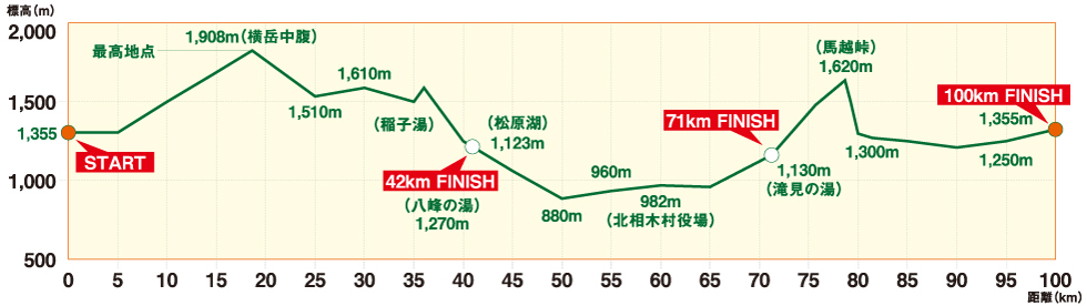 | 距離 | 0km | 23km | 42km | 50km | 71km |