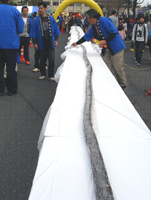 選手、家族、みんなで力をあわせて「全長18メートルジャンボ巻き寿司づくり」に挑戦!
