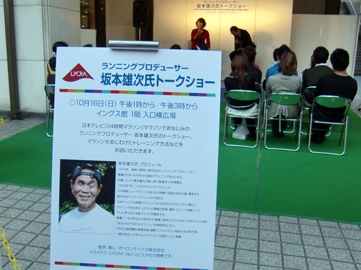 初の大都市マラソンで湧く大阪で、楽しいトークを!との企画にお招きいただきました。トークショーは、阪急イングス館で午後1時と3時の2回。ランナーの方、健康づくり中の方、通りすがりの方、いろんな顔ぶれを前に、司会の前田彩名さんとのかけ合いで行いました。