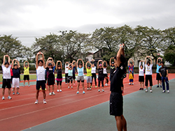 まずは、坂本からマラソンのアドバイスやウォーミングアップについてのレクチャーです。