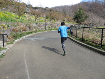 ・いつもよりストライドは狭めに、リズム良く腕振りを行いピッチ走法で走る。