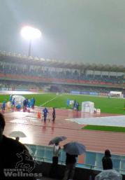 梅雨前線に覆われたこの日は朝から雨、しかも土砂降り。種目によっては雨で競技に不利なものもあるが、長距離陣にとってはむしろ湿度で呼吸が楽になる、という捉え方もできる。