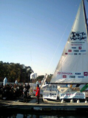 今日は間寛平さんのアースマラソンで洋上帆走するエオラス号のお披露目会見を夢の島ヨットハーバーで行なった。
