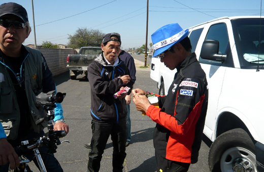 湿気の少ない晴れた朝は爽やかだ。今朝もアースマラソンのブログを見て来たという現地の女性三人が応援に来てくれ、差し入れを頂く。ホントにありがたい。長年カリフォルニアに住んでいる方が多く、皆さん、寛平さんのファンであり、会いたい気持ちを携えての応援のようだ。