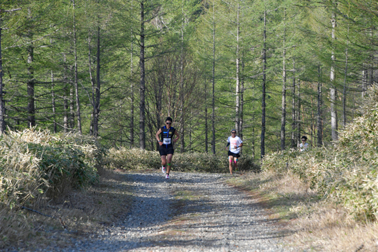 スタートしてから10kmほど進むと林道コースに入ります。長さにして約15km、未舗装の砂利道を走るトレイルコースは一気に心拍数を上げること間違いなしです。序盤戦はトレイルシューズがオススメ!!42㎞地点の着替えポイントでランニングシューズに履き替え気分一新走り出しましょう。
