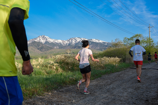 馬越峠を攻略することができればあなたも完走目前!フィニッシュゲートの下、完走メダルを持ってお待ちしております。