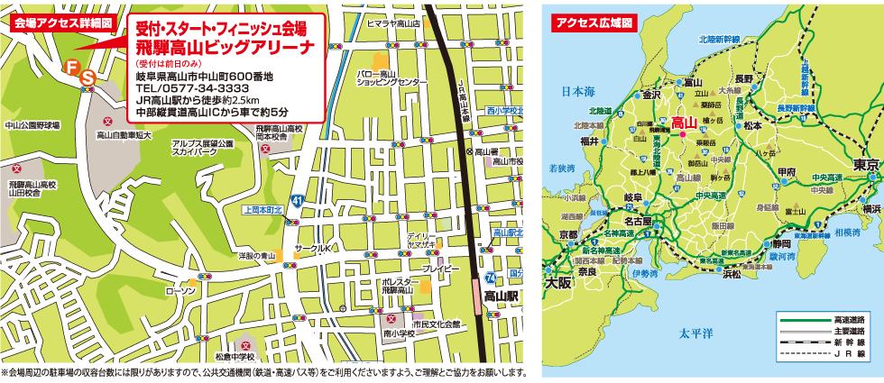 フィニッシュ後にタクシーをご利用の方は、ビッグアリーナの臨時タクシー乗降所をご利用ください。(事前予約不要)