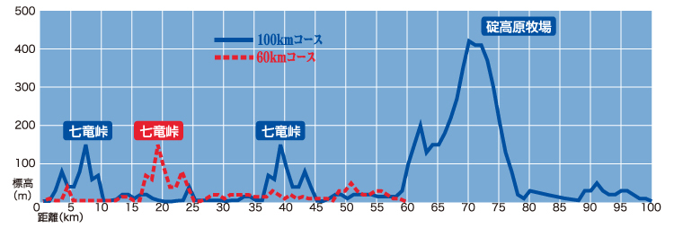 *シリーズ他大会の最高地点:チャレンジ富士五湖 1,058m、飛騨高山ウルトラマラソン 1,345m、日光100kmウルトラマラソン 1,310m、白山白川郷ウルトラマラソン 1,450m
