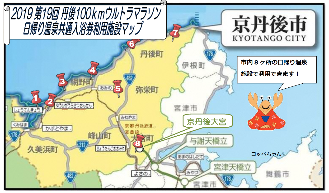 大会期間中(9月14日(土)~9月16日(月・祝))に京丹後市の入浴施設で利用できる共通入浴券を受付時にお渡しします。
