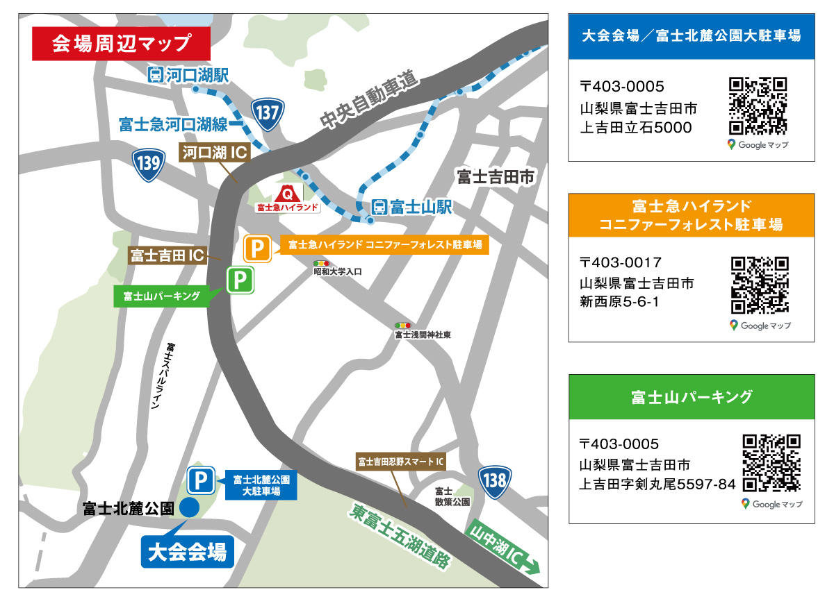 ※大会専用駐車場へは駐車証が必要となります(駐車証は事前にお申込みの方のみ参加案内と一緒に送付しています)。