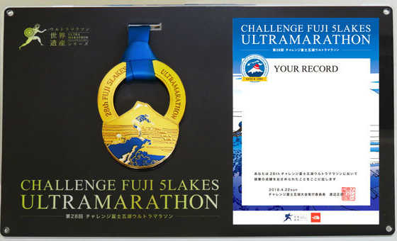 記念プレートにはメダルのリボンを通す穴が開いており、完走メダルを飾れます。
