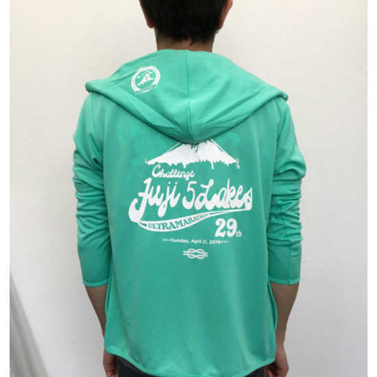 背面に富士山をモチーフとしたポップなデザインをあしらった薄手のドライパーカー。