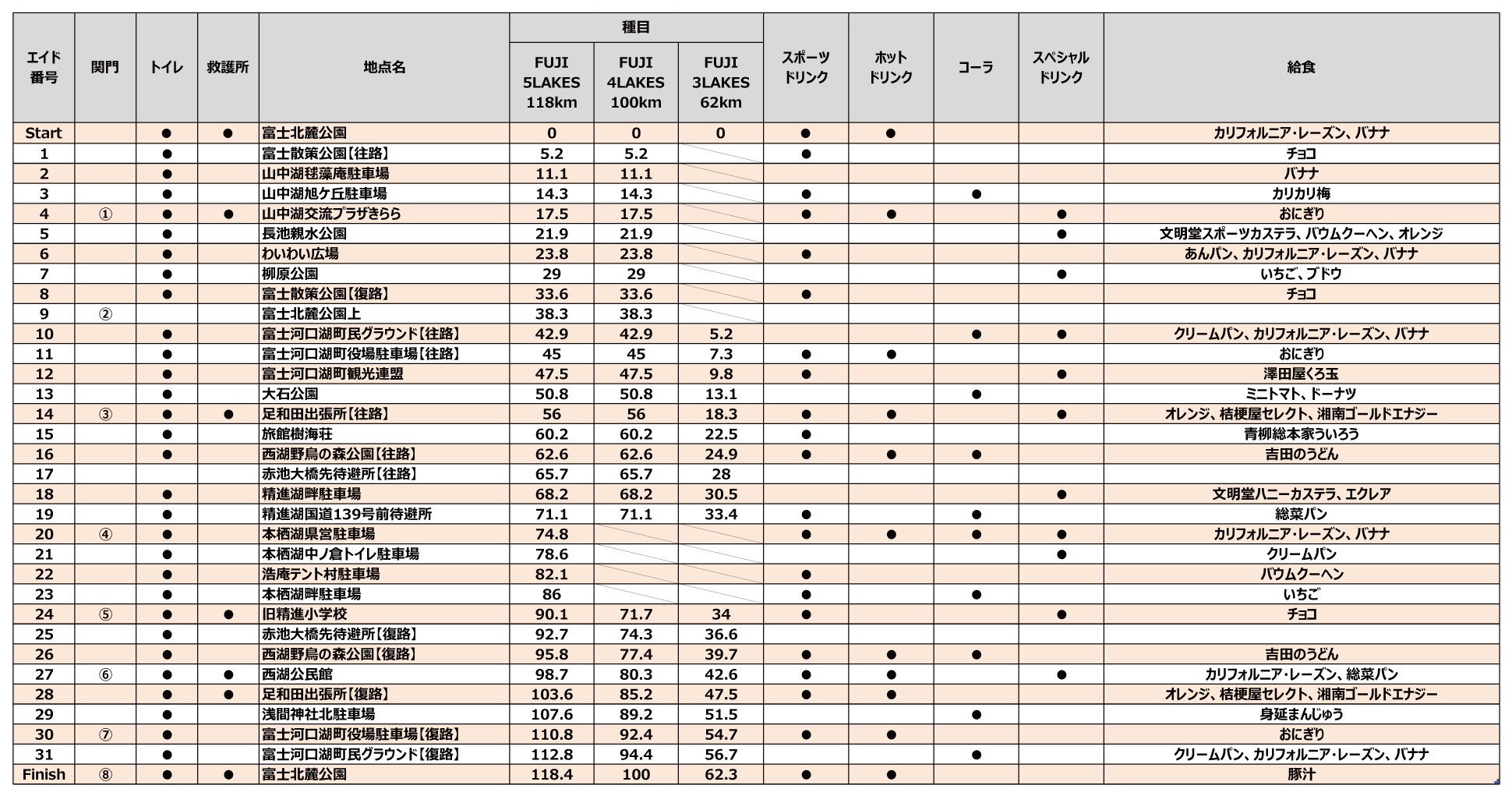 エイドステーション・関門・トイレ・救護所一覧(4/15 一部更新)