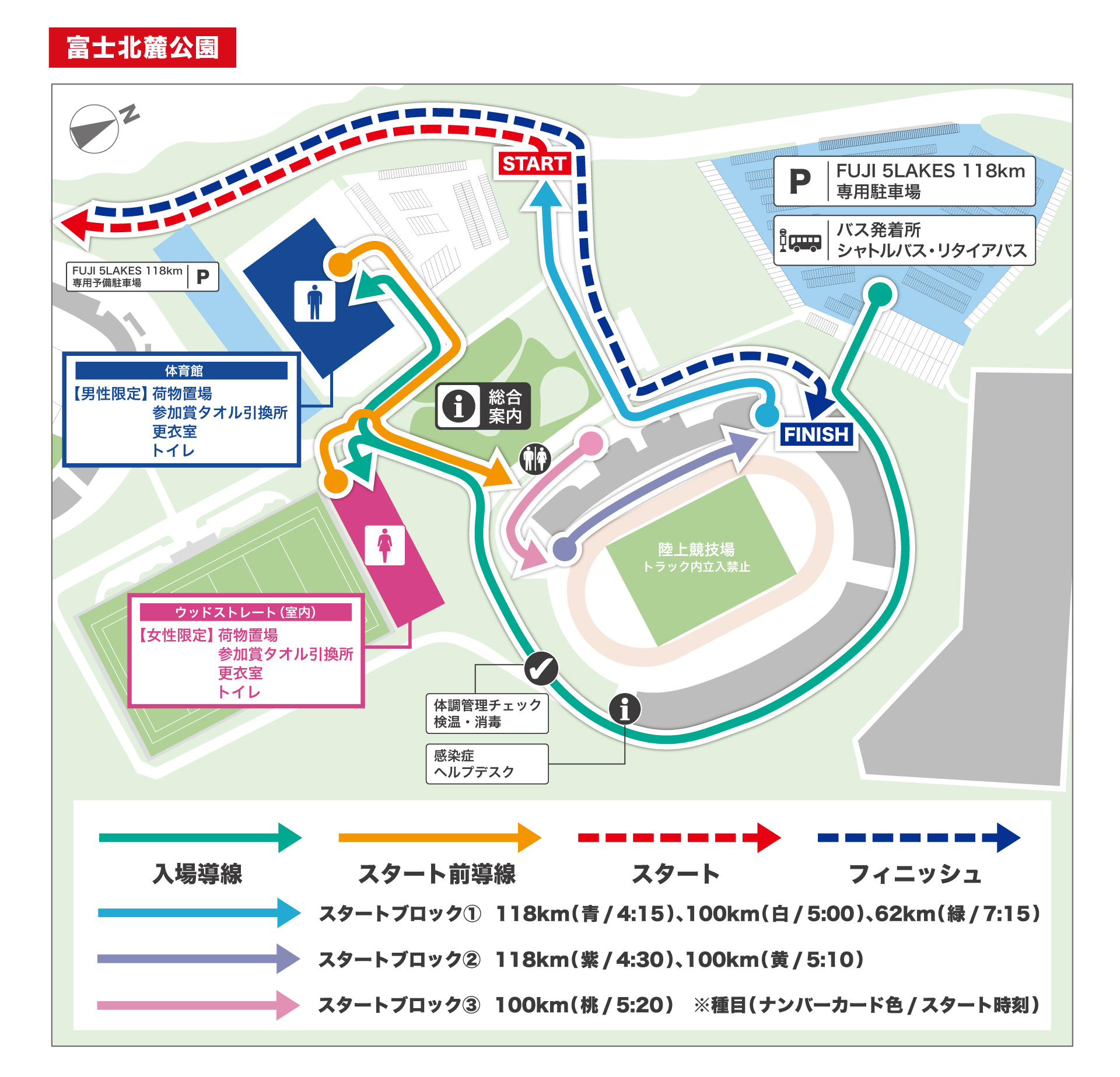 ご自身のナンバーカードをご確認いただき、スタート時間までに各スタートブロックへお越しください。