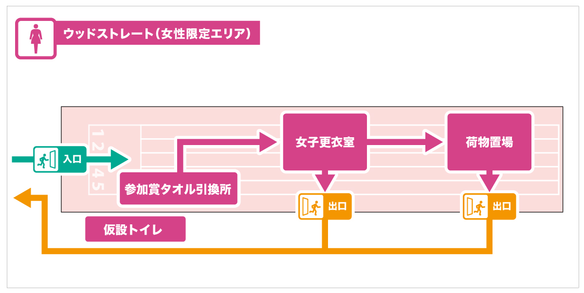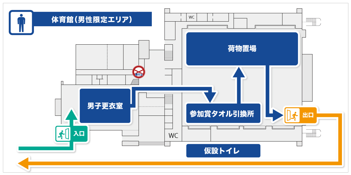 参加賞タオル引換所、更衣室、荷物置場があります。