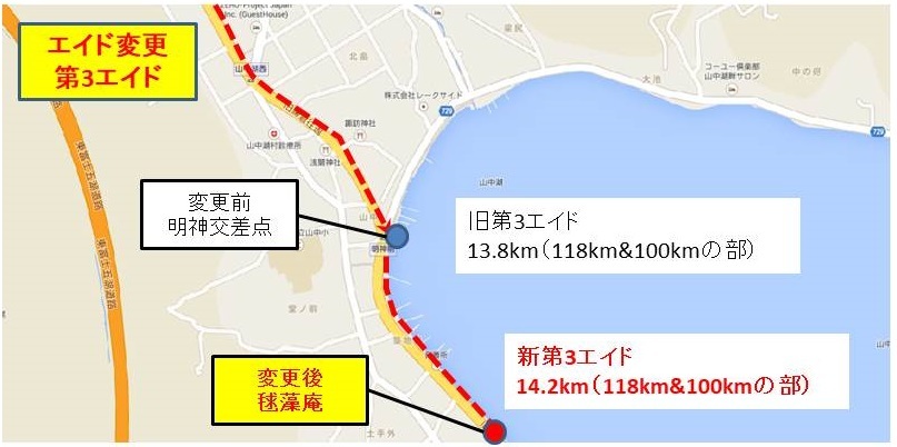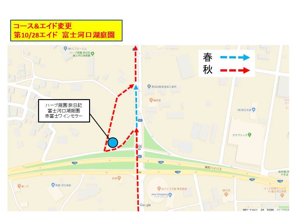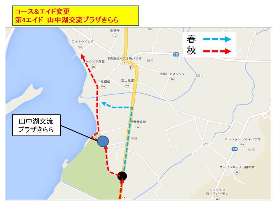 コース コース&エイドの変更箇所 第29回大会より、以下の箇所が変更となっています。誘導員の指示にしたがって走行してください。 緊急工事棟等により、本来予定していたコースが走行できず、急遽コースが変更となりました