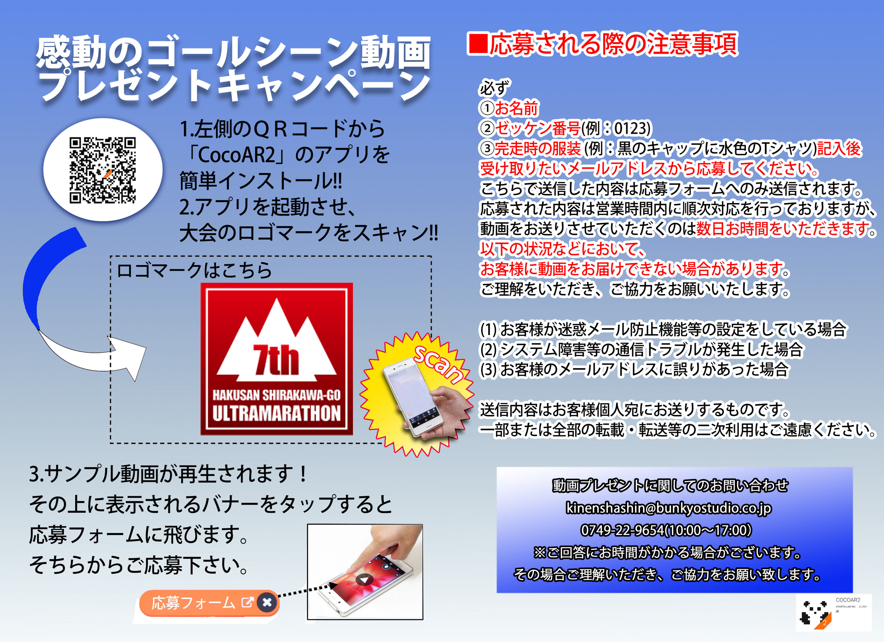 『第7回 白山白川郷ウルトラマラソン』に出場された皆様の勇姿を撮影しております。