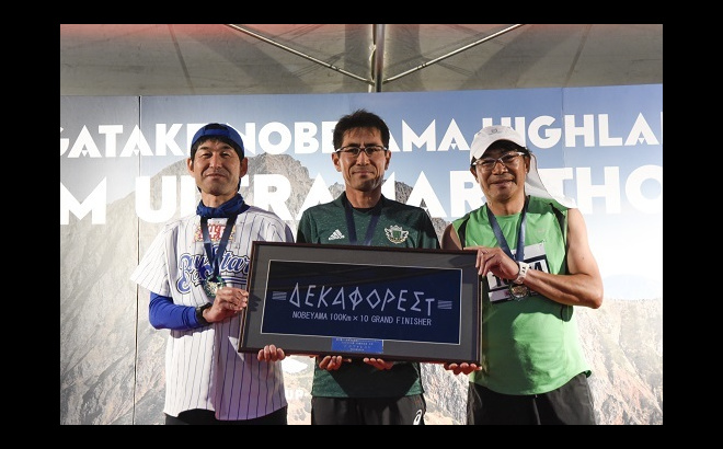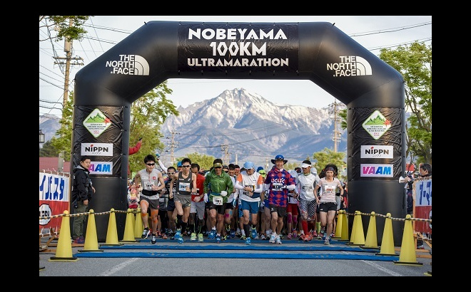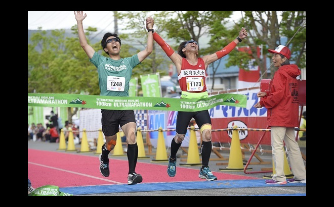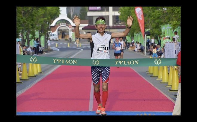 馬越峠を攻略することができればあなたも完走目前!フィニッシュゲートの下、完走メダルを持ってお待ちしております。