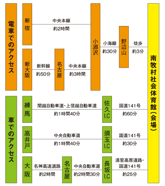 - ①練馬方面 関越自動車道・上信越自動車道 佐久ICより国道141号 約60分