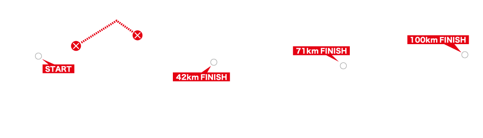| Distance | 0km | 23km | 42km | 50km | 71km | 79km | 87km | 100km |