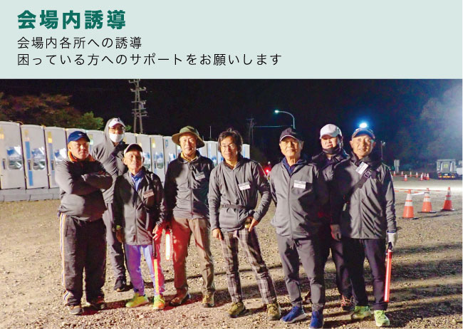 | 適宜休憩・食事を取りながら、会場班・コース班に分かれて活動 | |