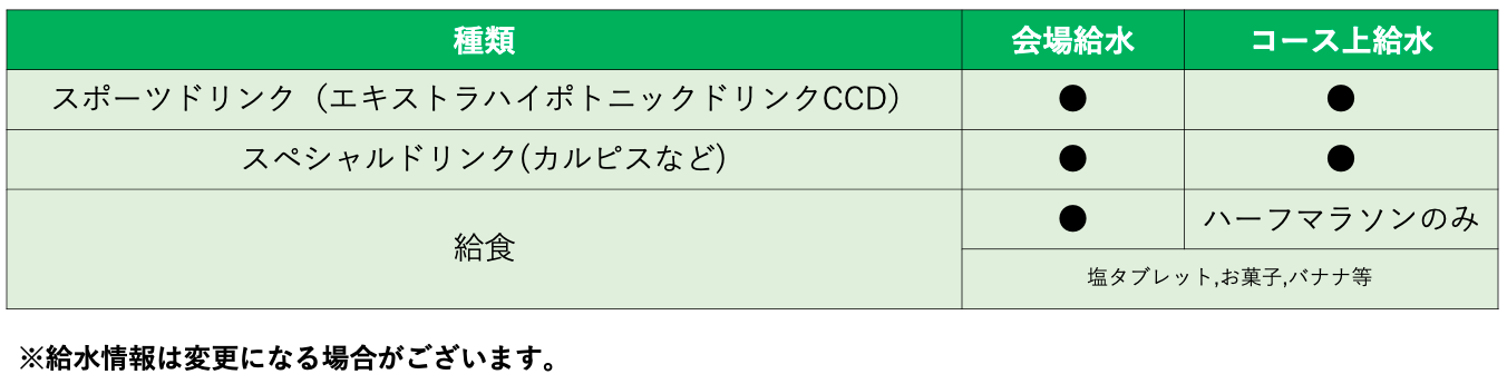 給水所では水、スポーツドリンク以外にもスペシャルドリンクをご用意する予定です。スペシャルドリンクはマイカップで補給することを推奨します。