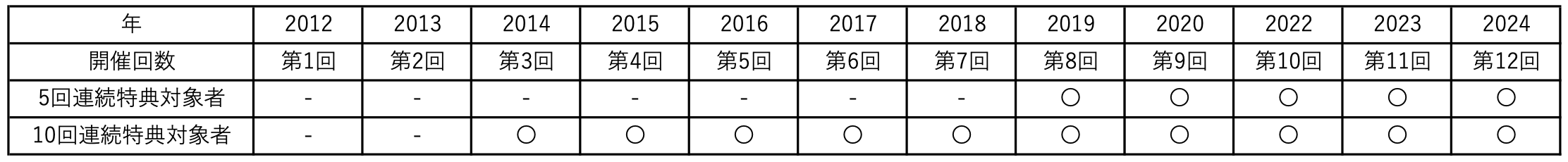 6回~9回、11回、12回の方への記念品の贈呈はありません。ご了承ください。