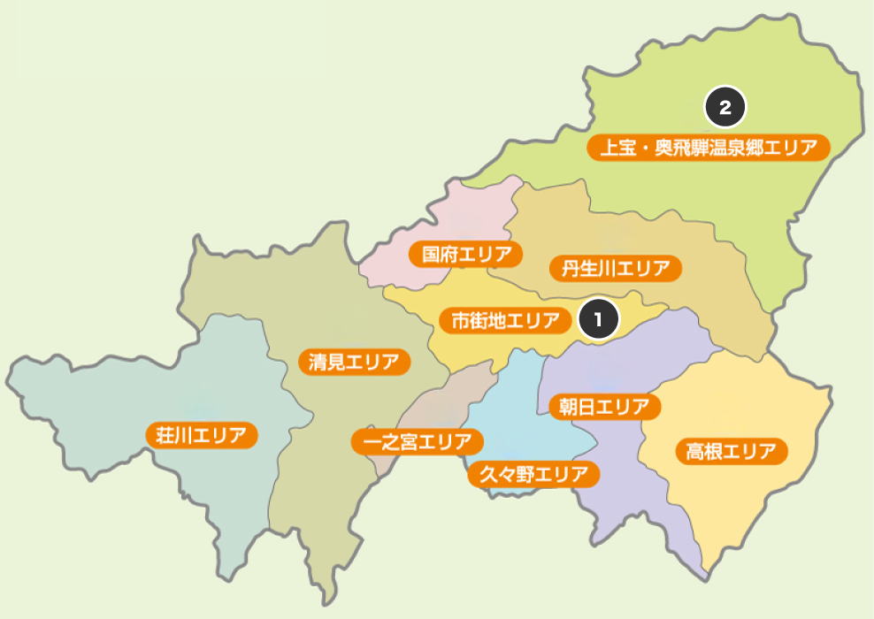 高山全域でお探しの際は宿泊エリアによって問い合わせ先が異なりますので、