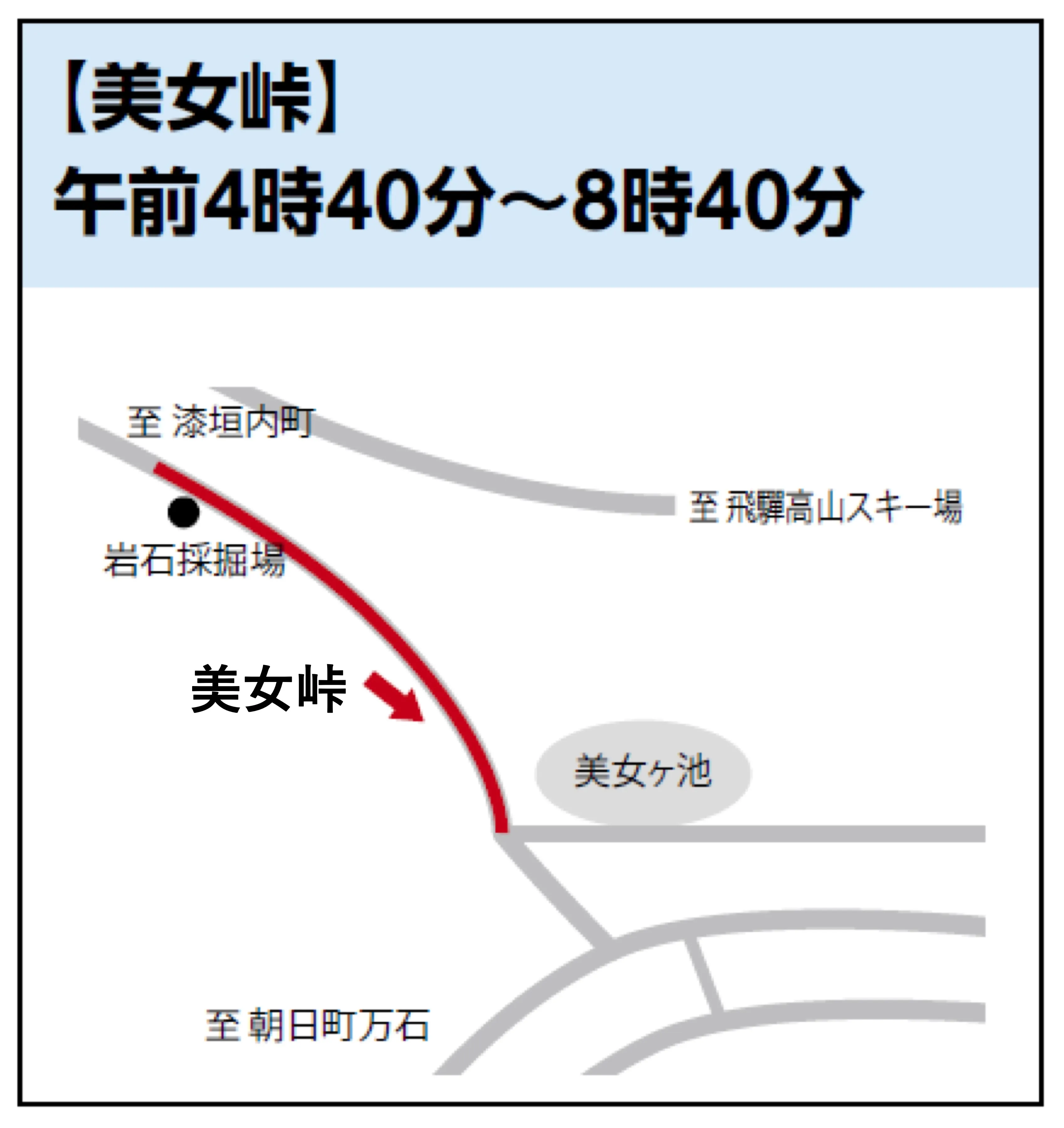 選手はコースの歩道部分もしくは白線の内側を走りますが、次の地点については車道部分を走りますので、それぞれの時間帯は全面通行止めとします。