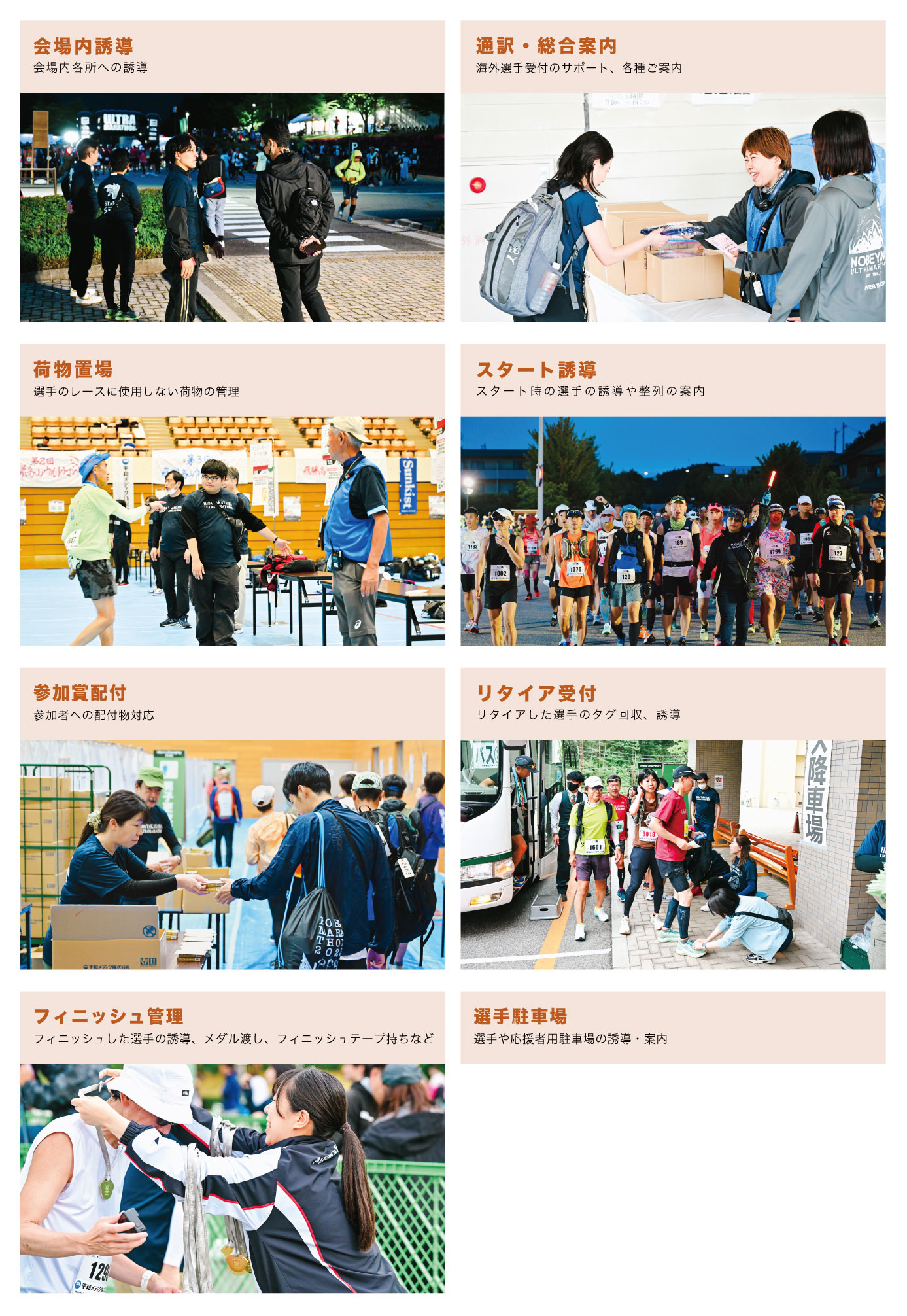 - ・大会運営上の安全のため、ボランティア活動中の動画や写真等の撮影はご遠慮ください。