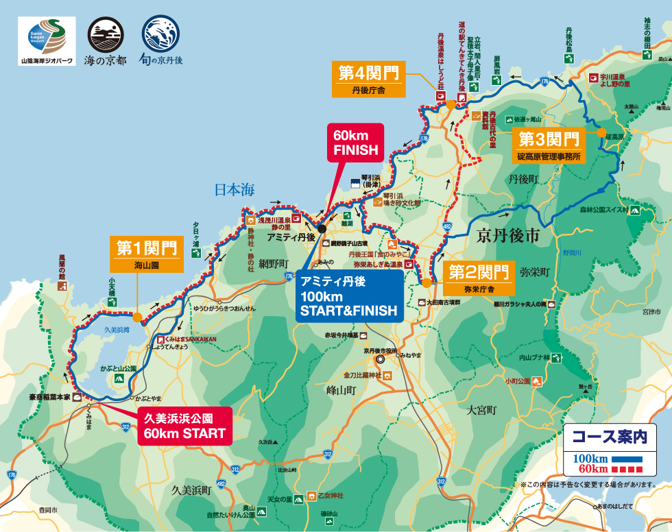 | 100km:アミティ丹後 60km:久美浜浜公園 |