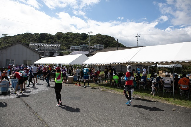 出走したランナーはコース上にある地元特産品のエイドステーションや