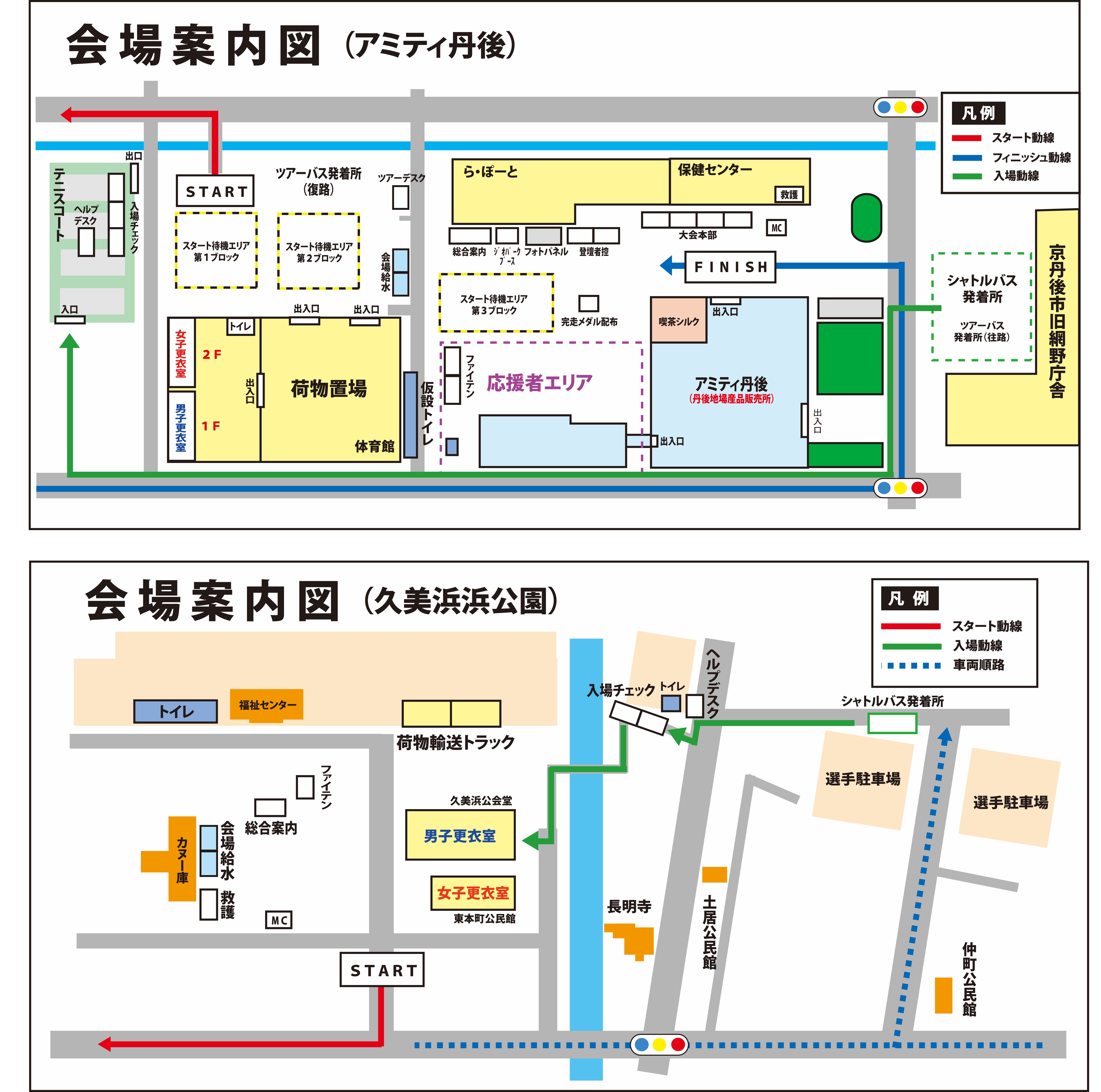 ※スタート会場(久美浜浜公園)で荷物を預けた場合、ゴール会場(アミティ丹後)の体育館まで輸送いたします。
